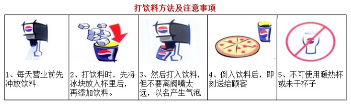 1、每天營(yíng)業(yè)前先沖放飲料;
