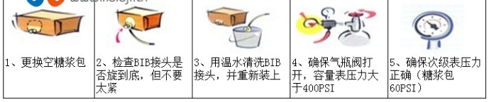 5、確保次級(jí)表壓力正確(糖漿包60PSI)。